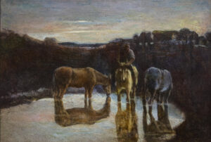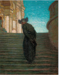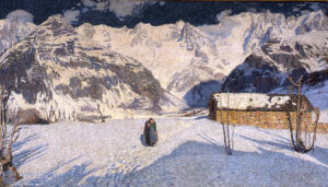 Infine, Questo mio sogno ideale. Nel solco di Segantini., propone uno sguardo sulla pittura influenzata dalla memoria di Segantini. Alla sua morte, che del resto giunse improvvisa a spezzare una ricerca ancora in piena evoluzione, Segantini non aveva né lasciava allievi diretti in senso stretto. Se il fenomeno del segantinismo – di quegli artisti, cioè, che si rifacevano in maniera più o meno originale ai tratti più emblematici della tecnica e dei motivi trattati dal pittore – rappresenta una parte consistente dell’eredità della pittura segantiniana, in mostra si vuole porre soprattutto l’attenzione sugli artisti che, Segantini vivente, ebbero con lui un rapporto diretto di collaborazione e di scambio. L’ultima sezione del percorso sarà, quindi, dedicata in modo specifico ai due pittori che collaborarono insieme a Segantini e che ebbero con lui un rapporto serrato di scambio umano e artistico: Giovanni Giacometti e Carlo Fornara. Attraverso alcune opere rimontanti agli anni del contatto diretto tra questi pittori e Segantini – dall’autunno del 1894 per Giacometti e dal 1898 per Fornara – il percorso evidenzierà l’influenza prima ancora ideale più che semplicemente stilistica che Segantini ebbe nella produzione di questi artisti. A conclusione una parte di questa sezione sarà dedicata alla produzione, sia pittorica che grafica, dei figli di Segantini che si dedicarono alla pittura, Mario e Gottardo, e che in maniera diversa raccolsero e svilupparono l’eredità artistica, nonché il culto, dell’arte del loro padre.