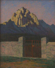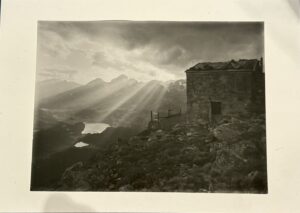 «Ora finalmente sto per realizzare il mio sogno! Fra breve andrò nell’Engadina e il mio pennello si poserà sulla tela prima che in altro luogo là sullo Schafberg dove il Maestro creava il suo gran quadro. Desiderosi di proseguire il cammino là dove i nostri maggiori ristettero». Così nel giugno del 1906 appuntava nei suoi taccuini Giuseppe Pellizza da Volpedo in procinto di intraprendere un vero e proprio pellegrinaggio nei luoghi segantiniani dell’alta Engadina. Il pittore visita le montagne abitate dal Maestro, osserva luoghi ritratti nei dipinti e riflette sulla poesia della montagna che apre, nella sua stessa arte, nuovi percorsi di ricerca e di sviluppo. Quello del pellegrinaggio nei luoghi dell’ultima parte della vita di Segantini è un vero e proprio topos del culto segantiniano: non solo Pellizza, ma altri artisti affascinati e colpiti dalle opere del pittore si recano in Engadina per visitare i luoghi della sua vita. Pellizza, Archimede Bresciani da Gazoldo, Cesare Maggi – che folgorato dall’opera di Segantini si trasferirà per qualche tempo a Maloja –, Alberto Falchetti, Attilio Lasta tra gli altri, con le loro opere permetteranno di ricostruire le diverse sfaccettature di questa riflessione sui luoghi della vita e della pittura segantiniana. Accanto a queste opere, in questa sezione, saranno presentate alcune opere, pittoriche e fotografiche, dedicate al cimitero di Maloja dove Segantini fu sepolto. Più che l’attenzione ai dati geografici o paesaggistici, in questi lavori emerge un senso di religiosità panteista: la tomba di Segantini diviene l’emblema di una unione tra l’uomo e la natura, dove le montagne, la luce delle alpi e i colori dei tramonti evocano il senso di una fusione cosmica dove il tempo mortale viene riassorbito dall’eternità della natura. Nascono così gli intensi paesaggi dedicati al piccolo cimitero realizzati da Bresciani da Gazoldo e da Benvenuto Benvenuti, che recuperava i motivi delle fotografie di Albert Steiner, che affidano alla luce il senso ultimo dell’eternità dell’arte segantiniana.