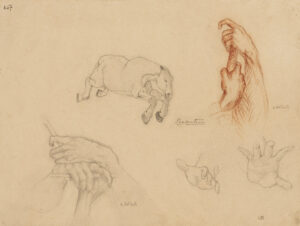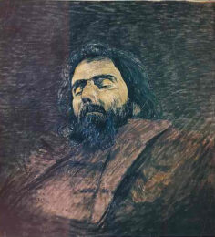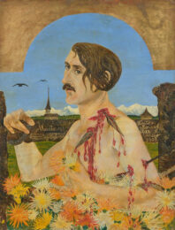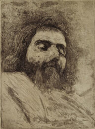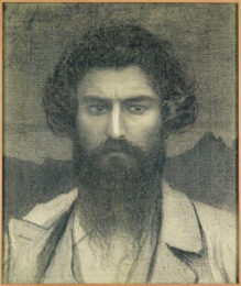 Nella seconda sezione, Quegli che vede dall’alto. Autoritratti e ritratti, il focus sarà sull’iconografia dell’artista. L’immagine di Segantini, con la sua caratteristica apparenza fisica, sin dagli esordi costituisce un elemento identitario fortissimo nella narrazione della critica: uno dei primi resoconti sulla pittura segantiniana ad opera di Luigi Chirtani ci consegna un ritratto del giovanissimo pittore dove gli elementi caratteristici sono individuati nella folta capigliatura sicché l’artista appare «nervoso, livido, nericcio come un calabrese» ( L. Archinti [L. Chirtani], Studi d’artista, «Rivista Minima», X, f. 5, maggio 1880, pp. 390-394). Col procedere del suo percorso artistico e con l’accrescersi della sua fama, soprattutto in relazione al carattere sostanzialmente indipendente e anti-accademico riconosciuto alla sua arte e alla sua individualità, si registrano già i primi ritratti dell’artista. Nel 1885 è Emilio Quadrelli che espone a Brera un busto di Segantini, mentre Paul Troubetzkoy realizza nel 1896, quando Segantini era di passaggio a Milano una scultura che, riportano alcuni critici del tempo, fu realizzata in due ore di seduta e nata dalla folgorazione di Troubezkoy dinanzi all’amico colto di sorpresa nella sua abituale posa di riposo. La costruzione della propria immagine, del resto, sembra rappresentare un elemento non secondario nella comunicazione del sé che Segantini stesso perseguiva e che appare in tutta la sua compiutezza negli autoritratti estremi realizzati nella metà degli anni ’90. Lavori nei quali Segantini rappresentava sé stesso come – citando Servaes – un apostolo, una figura a metà tra un re Assiro e la figura di Cristo, offrendo di sé una visione ben distante dal reale e che esprimeva, semmai, quella dell’«inneren Menschen», di un uomo interiore, la cui conoscenza era preclusa agli altri. Attraverso un percorso che dagli autoritratti segantiniani passa ai ritratti dell’artista, da quelli scultorei di Bistolfi e Troubetzkoy a quelli pittorici di Fornara e Gallina ispirati a celebri fotografie come quella di Angelo Klainguti, il percorso attorno all’immagine segantiniana si chiuderà sull’intensissima serie di Giovanni Giacometti dedicata a Segantini ritratto sul letto di morte.